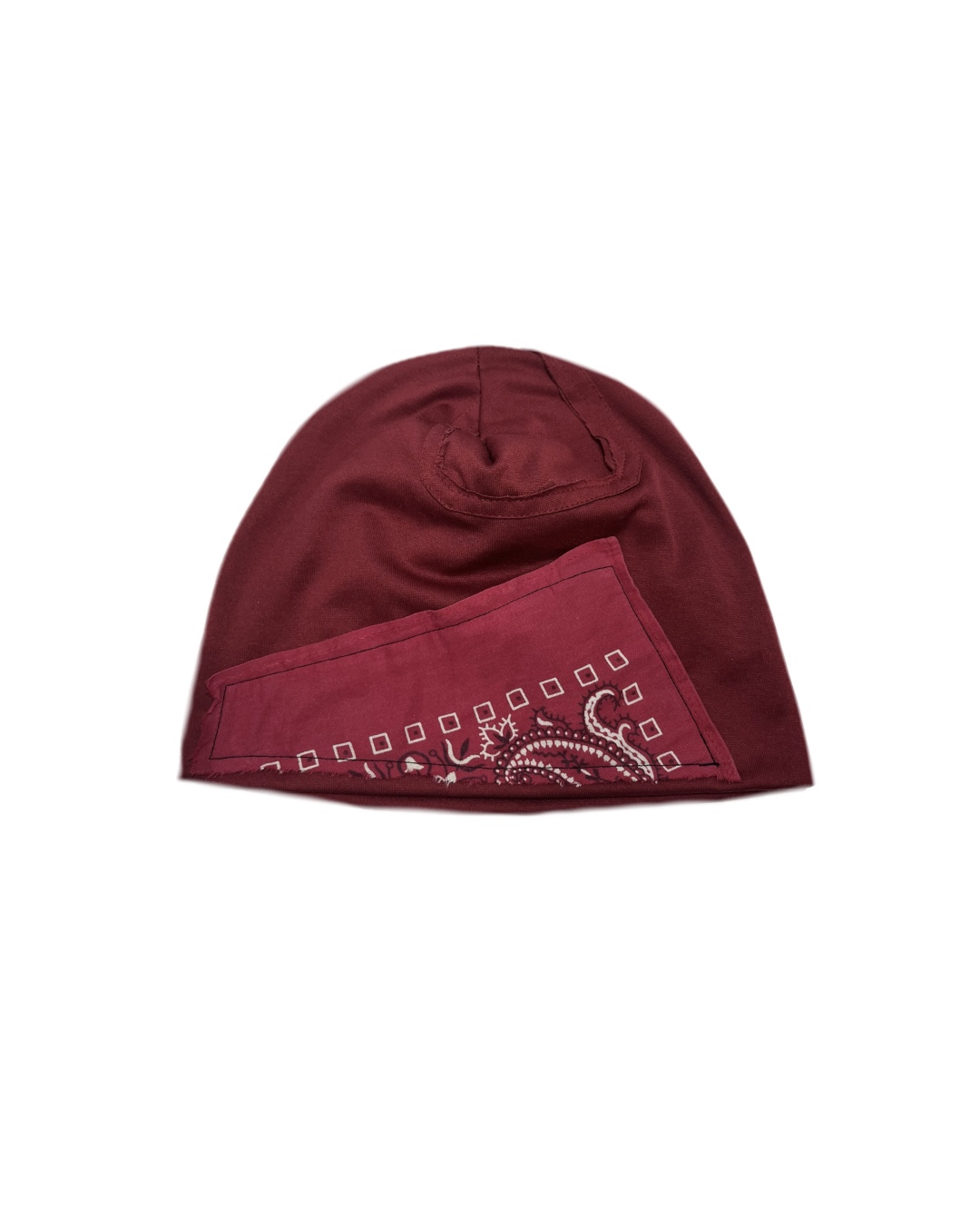 -Gorro deportivo elaborado con telas y tecnicas de upcycling con textiles ya existentes