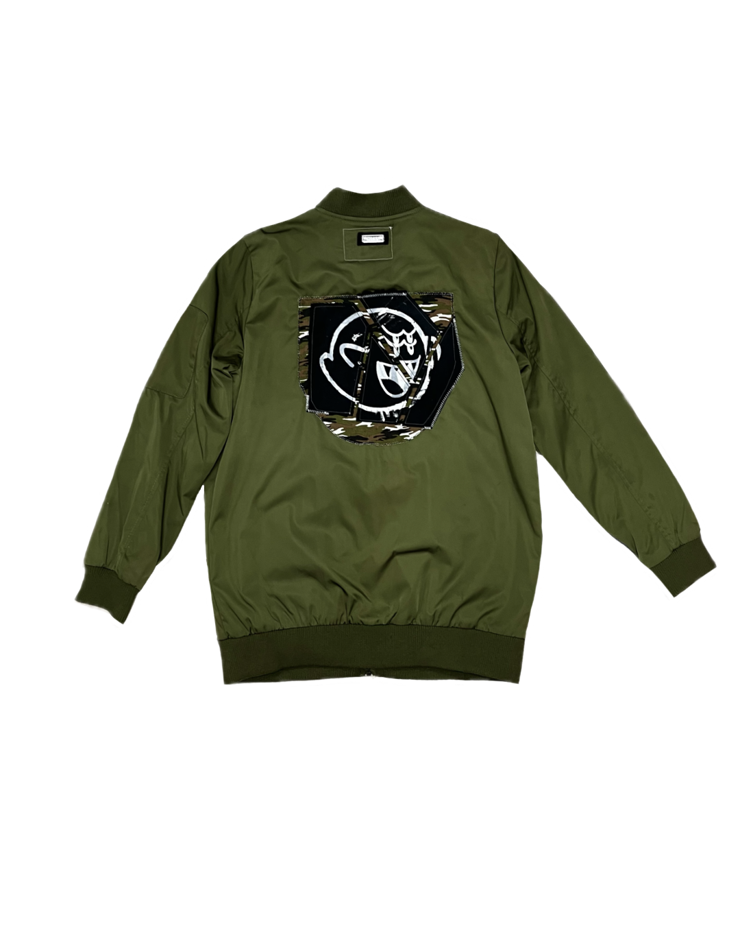 -Chaqueta bomber verde militar de nylon con cremallera. Seleccionado a mano.