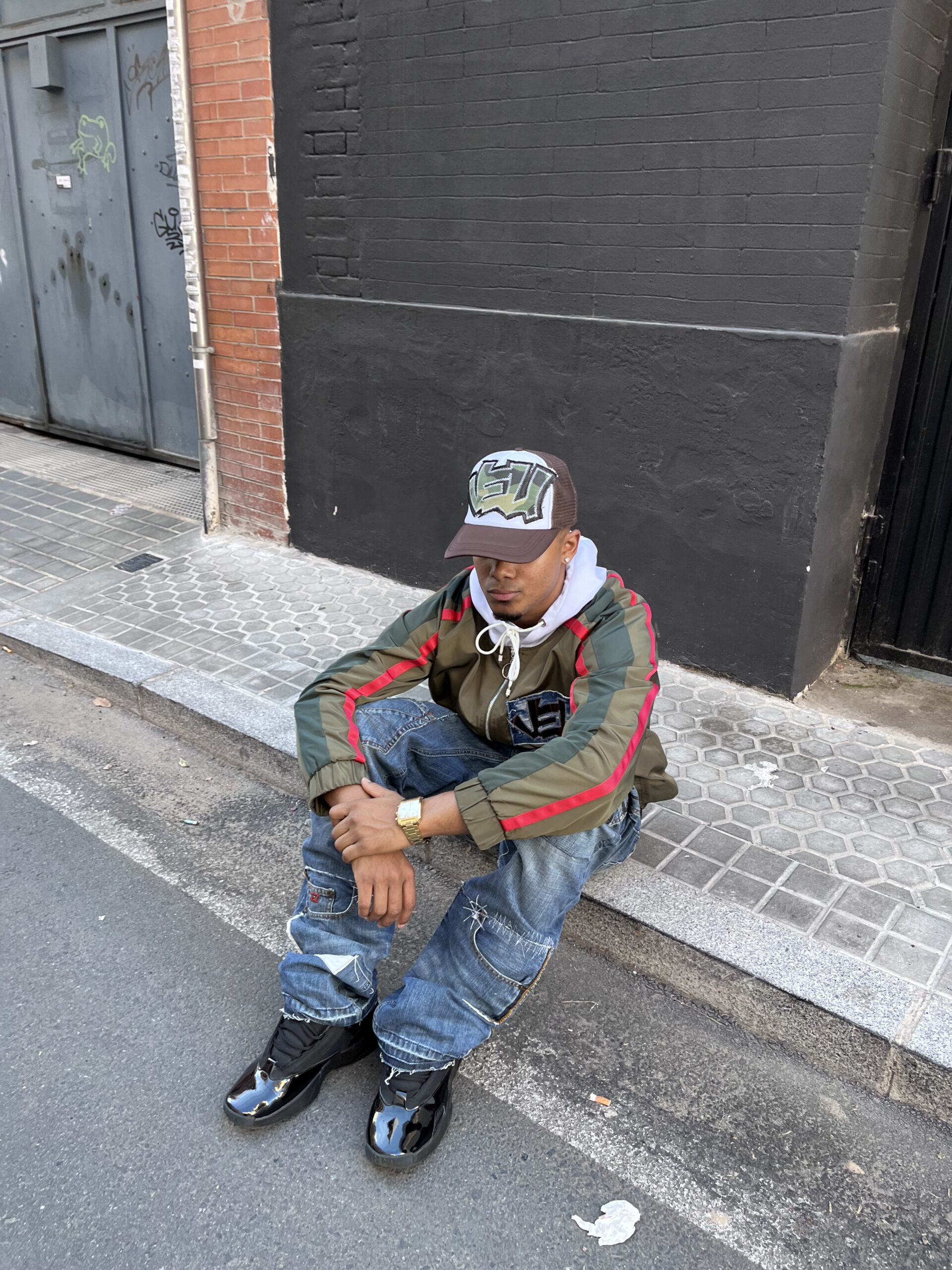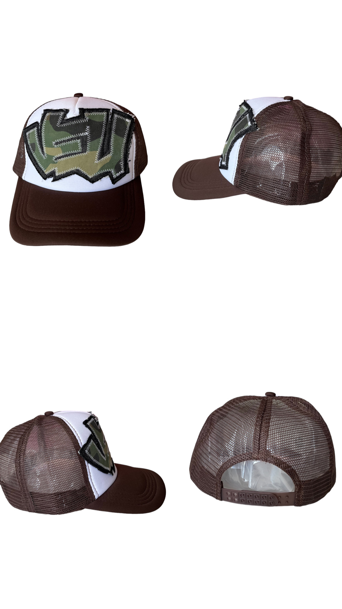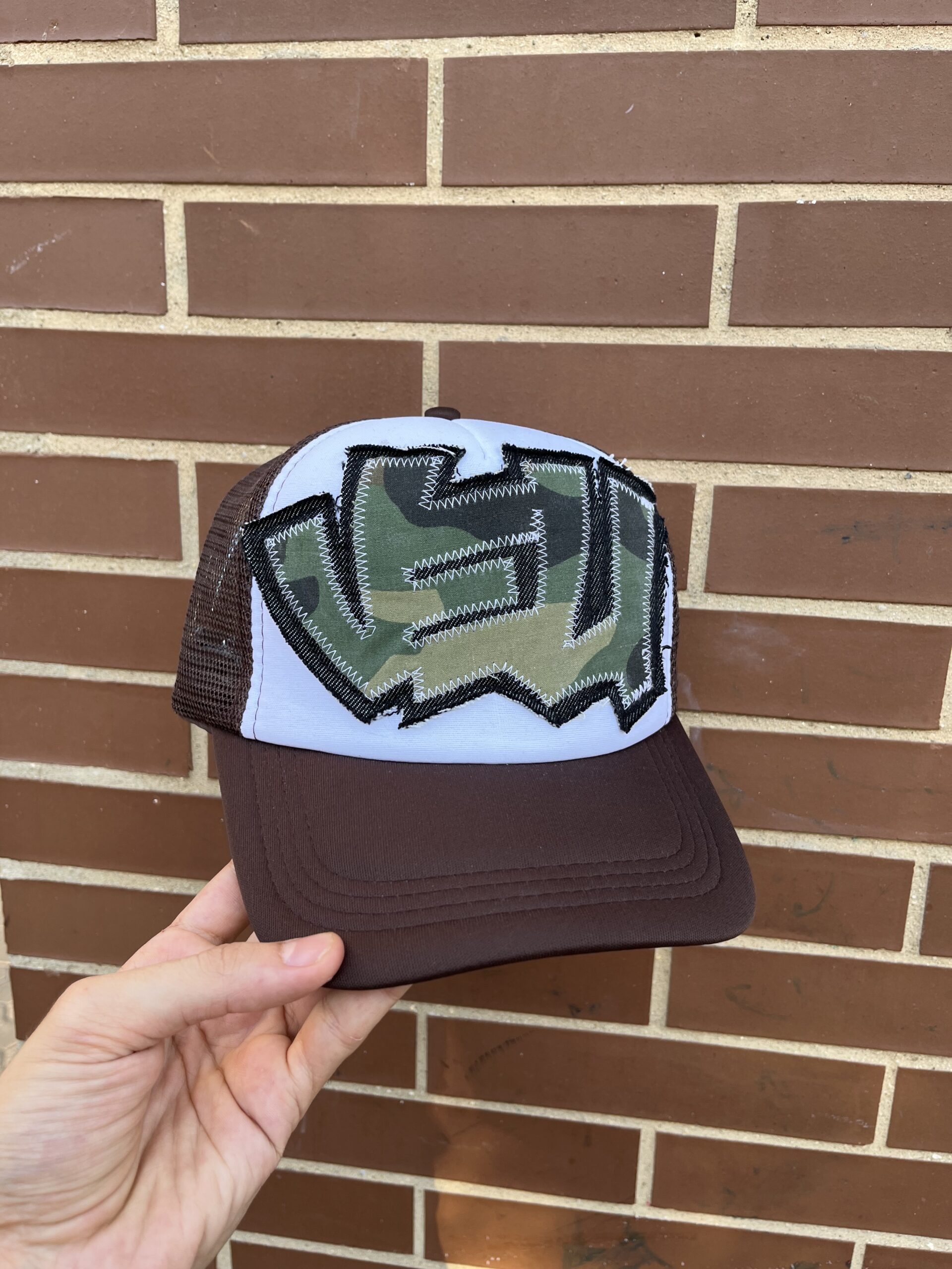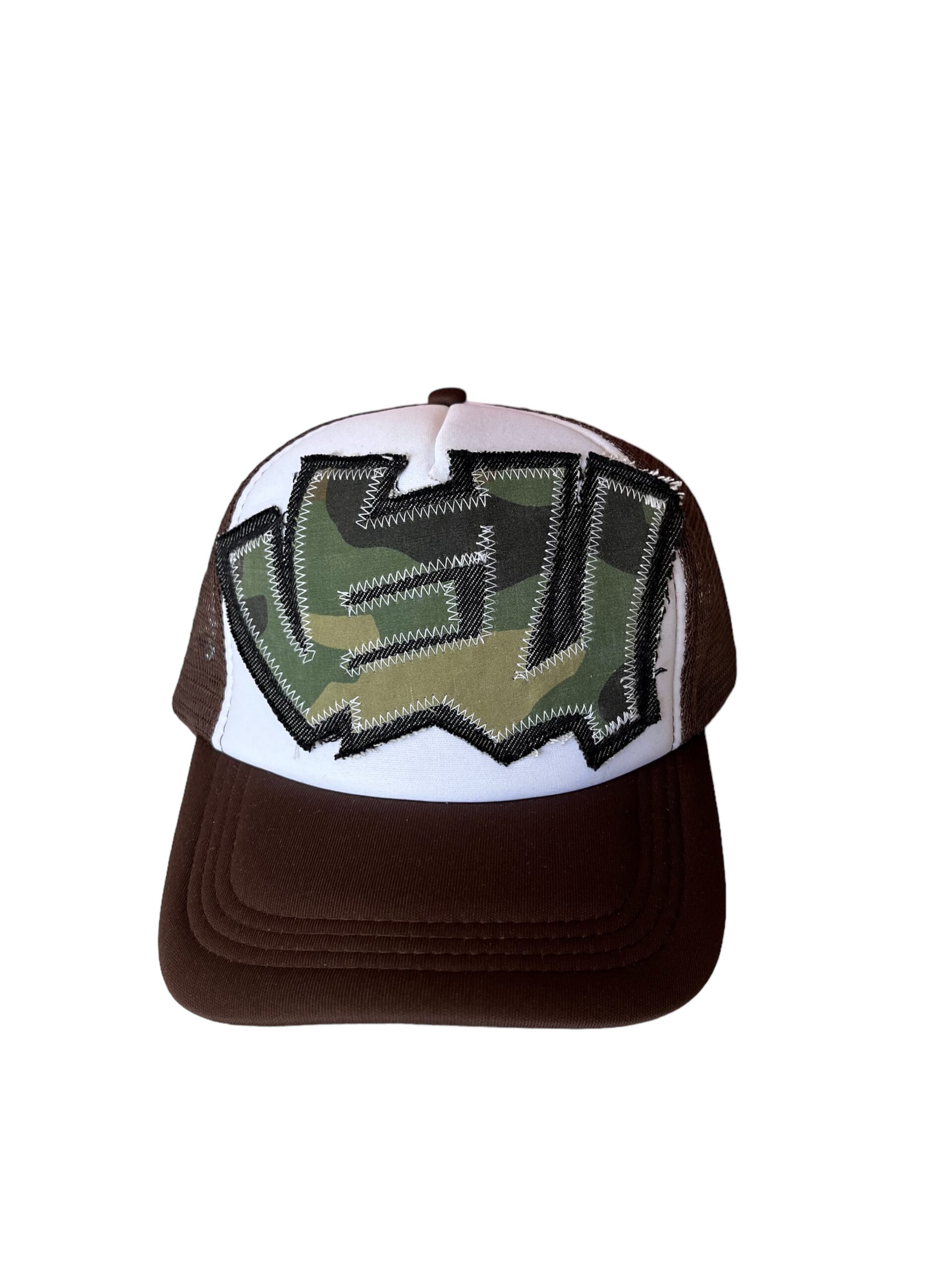 Gorra marrón trucker cap con parche elaborado con telas vintage camo