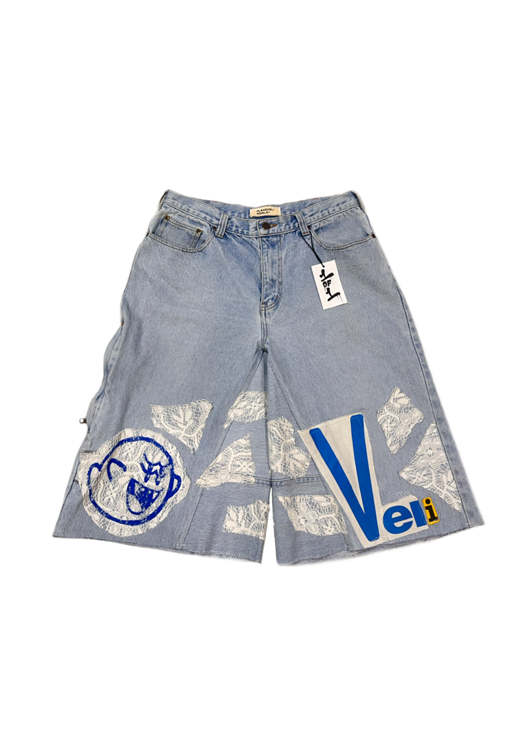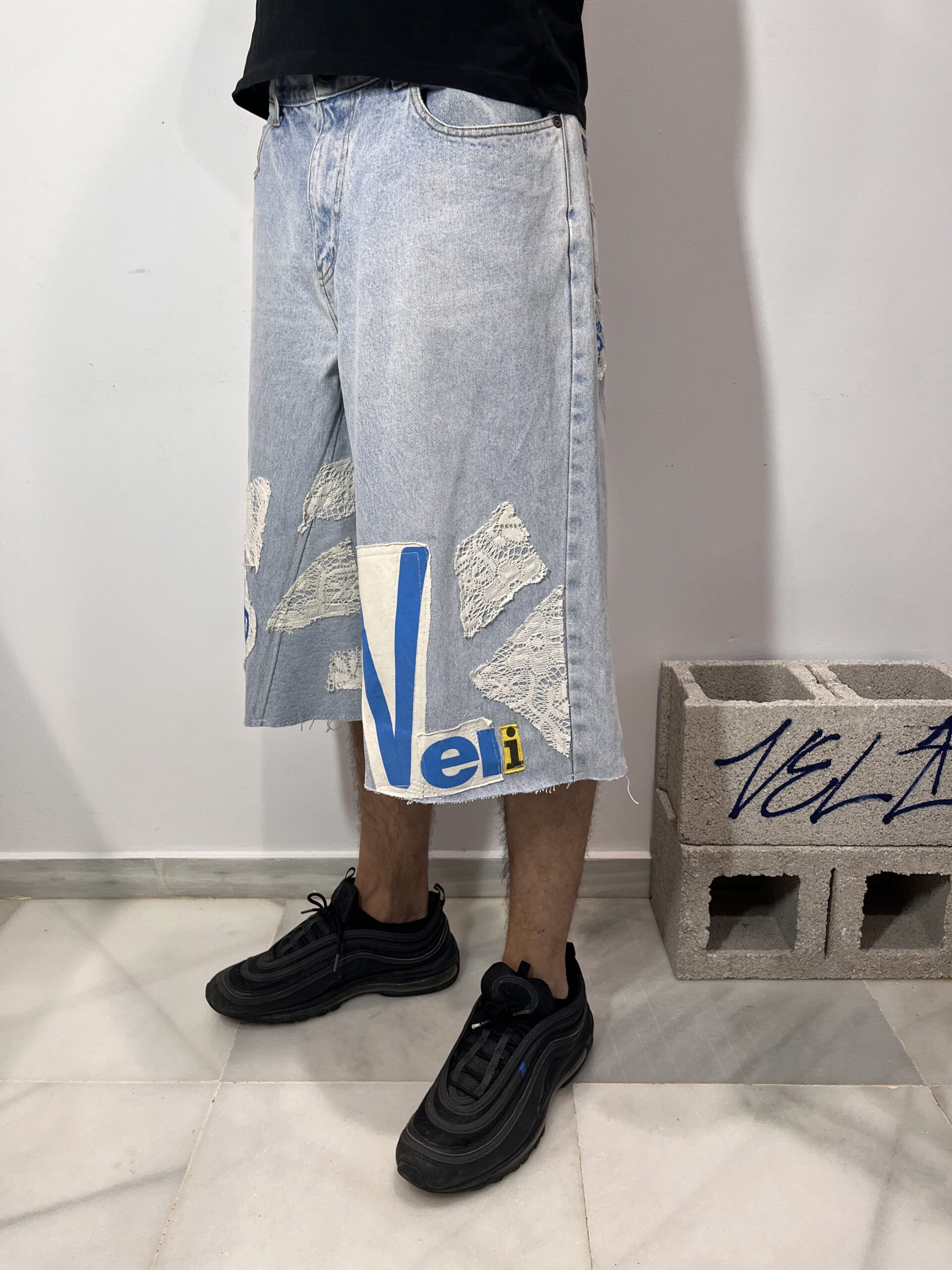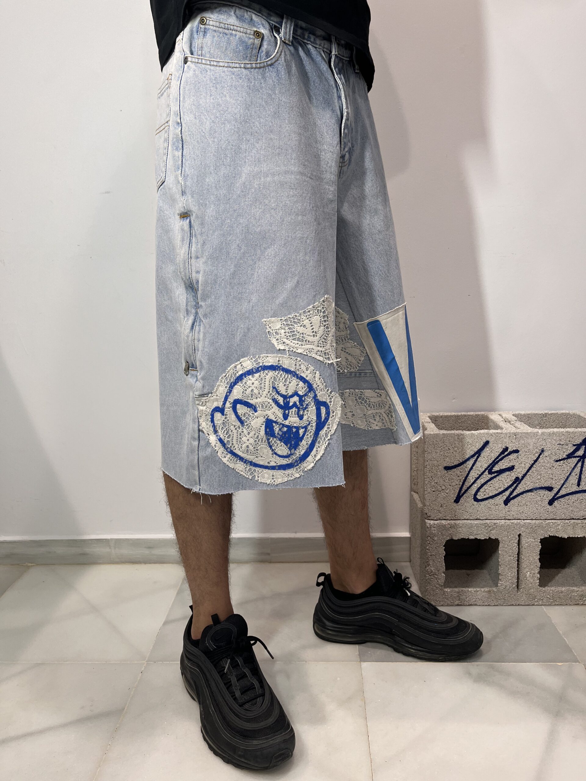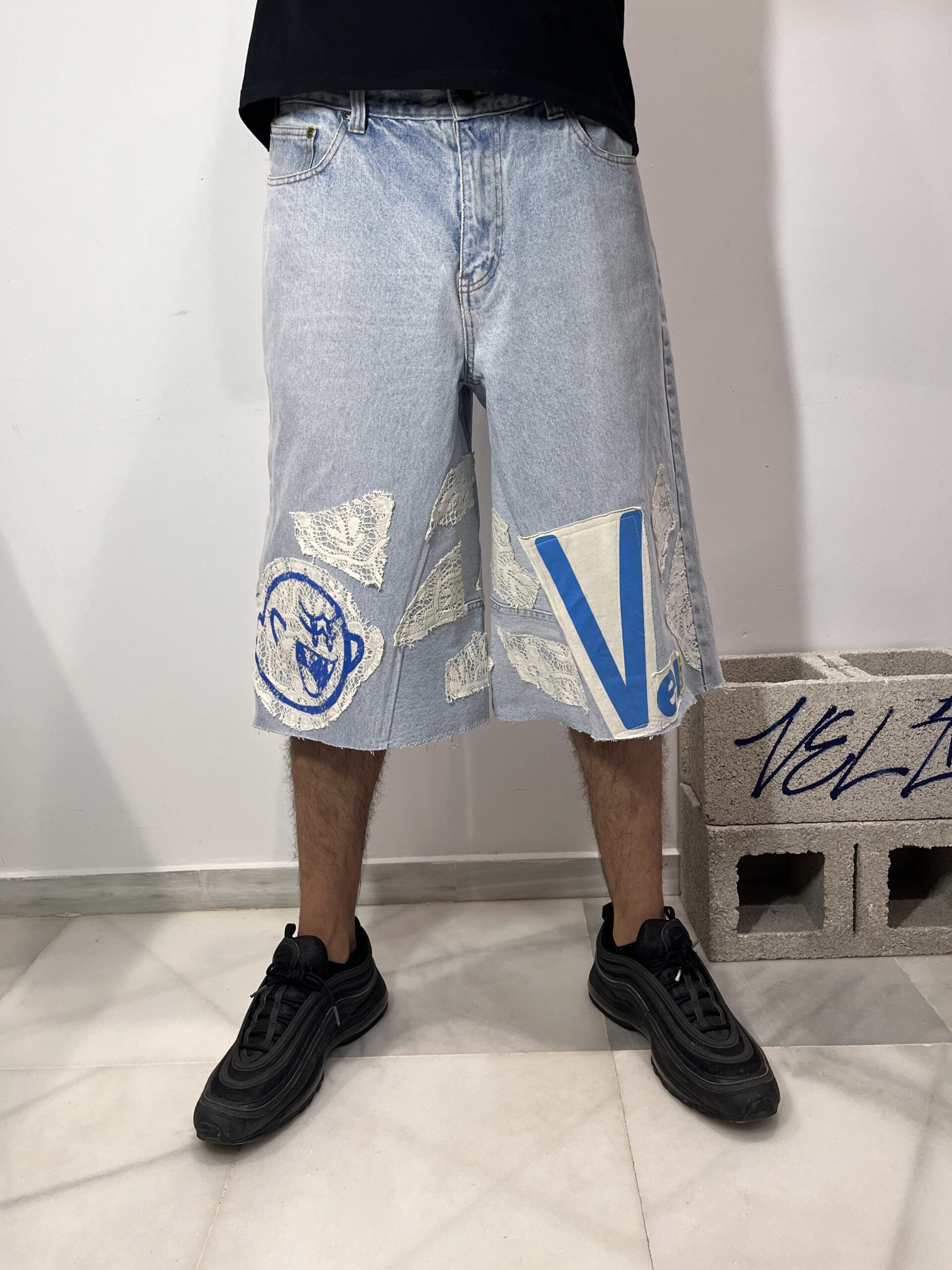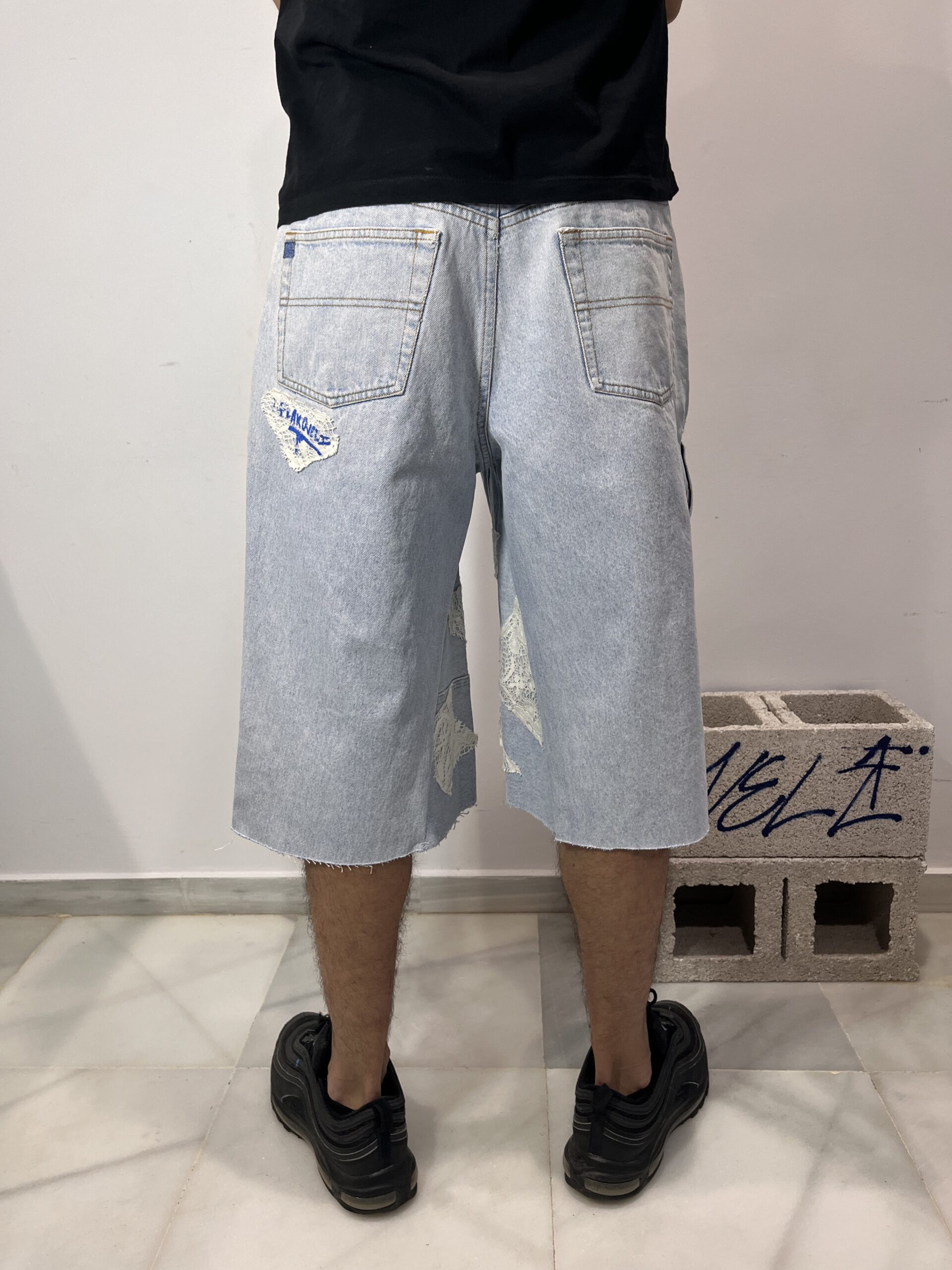 -Pantalones vintage cortos por debajo de la rodilla estilo jorts, ancho de pierna baggy af .
